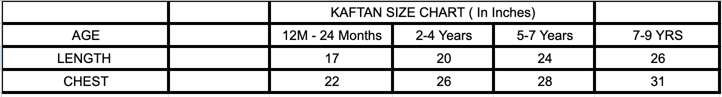 Introducing our delightful collection of Kaftans for Girls, designed to bring comfort, style, and a touch of whimsy to your little one's wardrobe.Made from premium quality cotton fabrics, they are lightweight, breathable, and gentle on your child's skin, allowing for all-day comfort and playfulness. Choose from our unique collection of Kaftans for Girls.