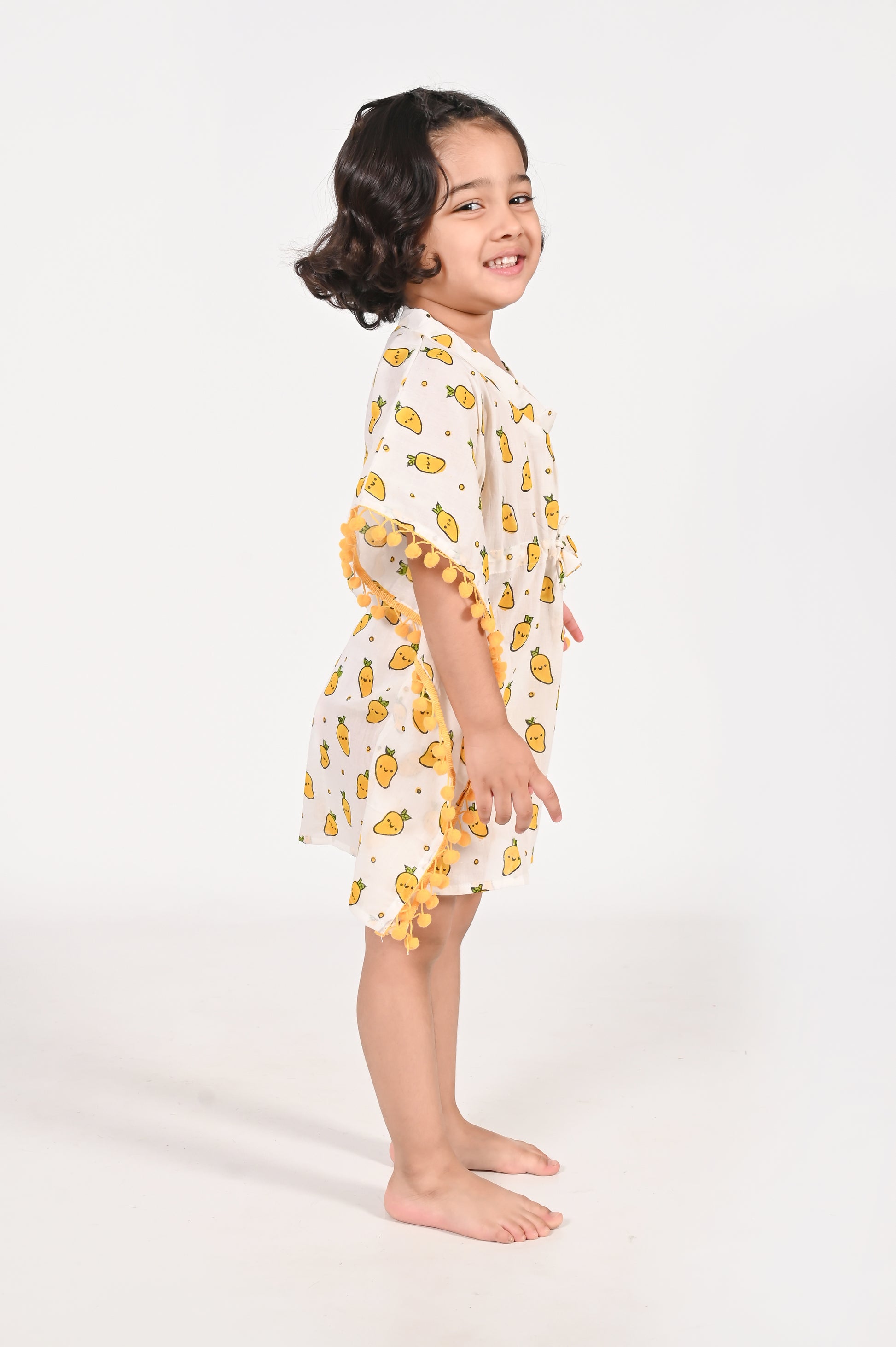 Everyone's Favourite Fruit now in a Print! Introducing our delightful collection of Kaftans for Girls, designed to bring comfort, style, and a touch of whimsy to your little one's wardrobe.Made from premium quality cotton fabrics, they are lightweight, breathable, and gentle on your child's skin, allowing for all-day comfort and playfulness. Choose from our unique collection of Kaftans for Girls
