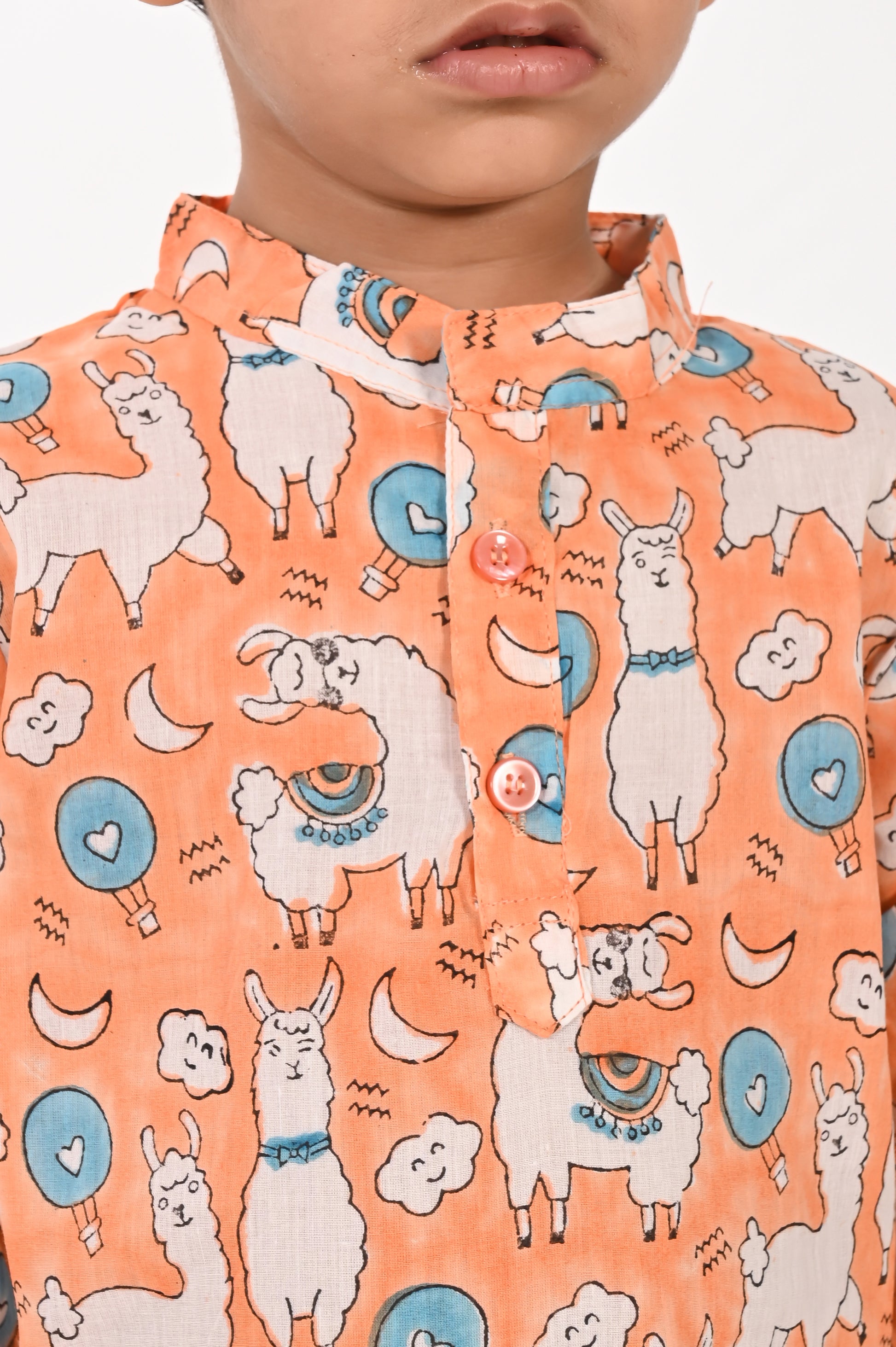 No Drama Llama- Cotton kurta for boys | cotton printed shirt for boys | cotton shirt fullsleeves for boys