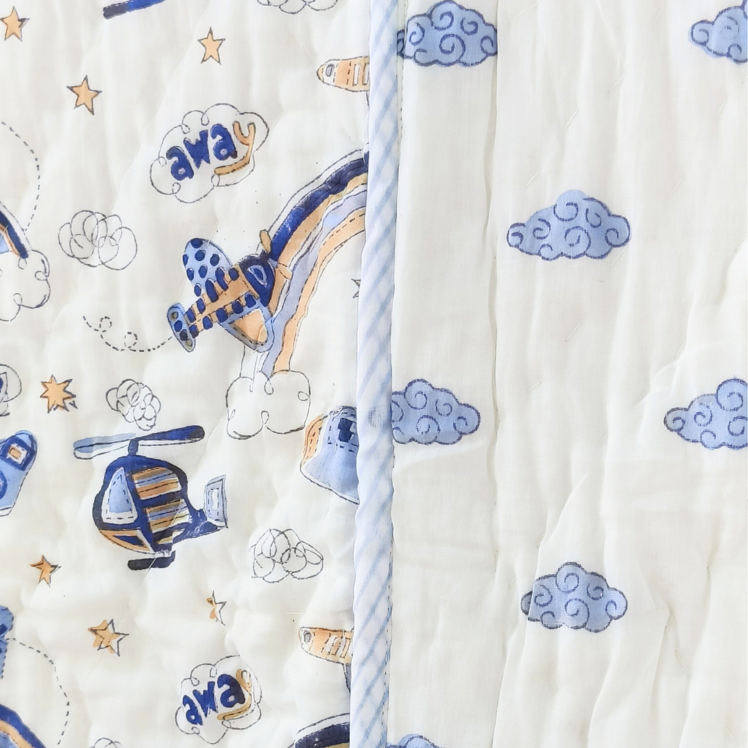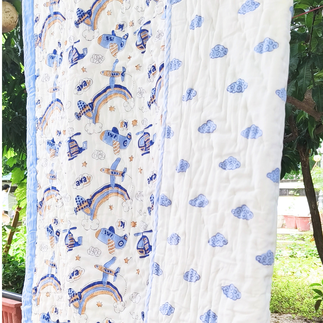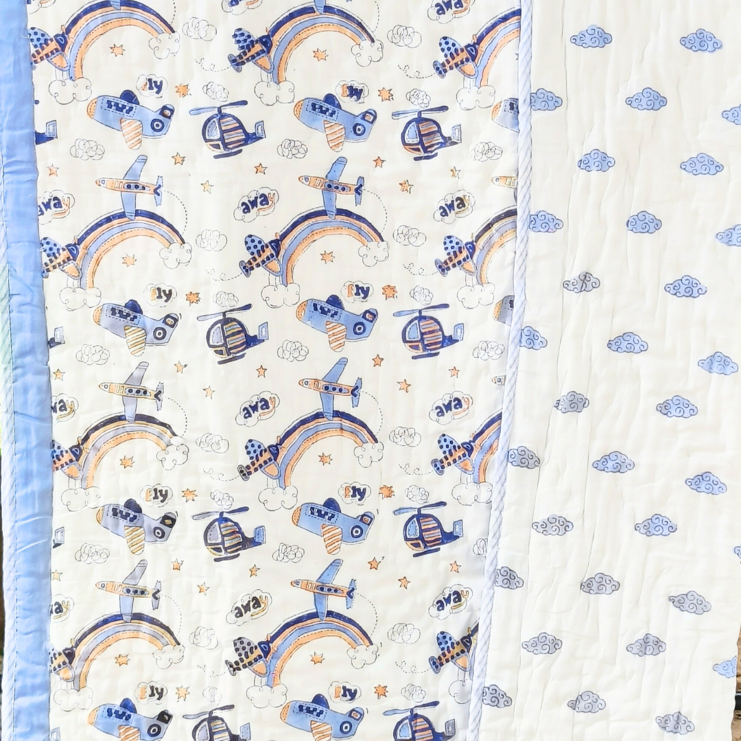 Aeroplane Hand block printed cotton Baby Quilt | Jaipur razai | size 40"X60"